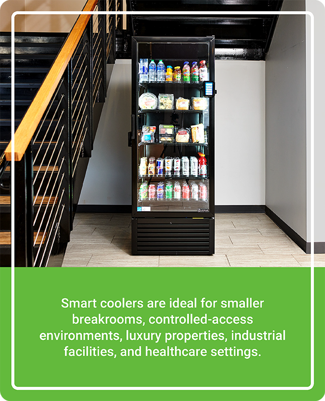 Smart coolers feature sleek, attractive designs that complement professional and upscale environments. These modern units enhance the look of your breakroom while delivering dependable unattended retail functionality.